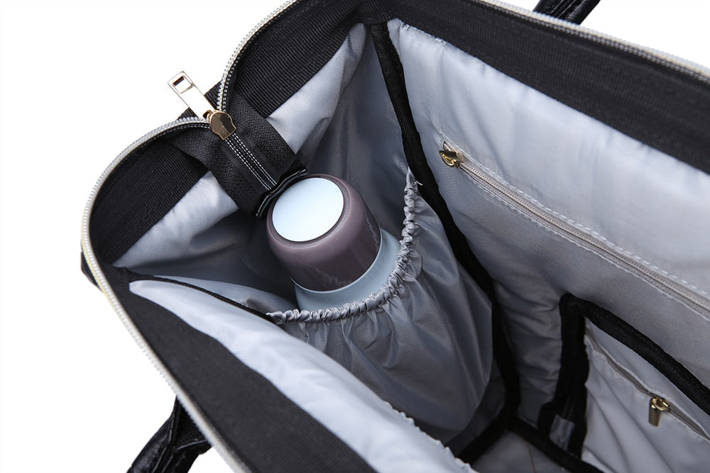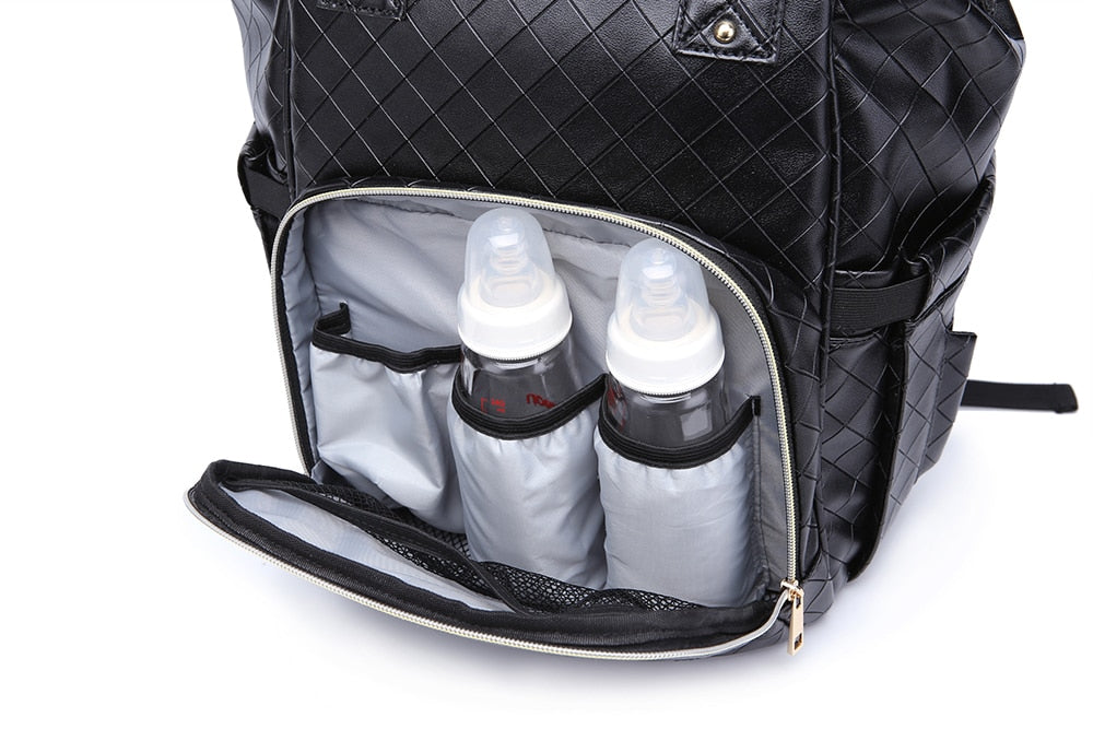Front pocket has three separated,insulated bottle holders, so that your baby could have his or her meal at a perfect temperature.
