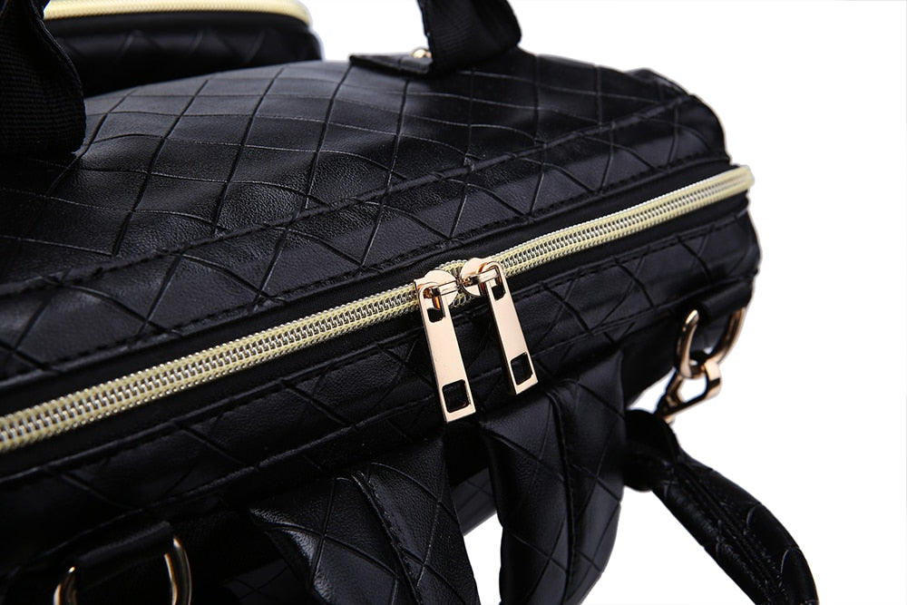 Soft, vegan leather with stylish rhomboid pattern and expertly chosen handles and zippers - meet Ada.